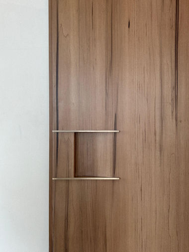 Studio Prakruthi’s typical door detail, developed from various stages of research and development on site, is a signature to our practice today. Set in handles demarcated by metal inserts creates a flushed, seamless flow to enhance the aesthetic and visual character of the door while serving a functional purpose of uninterrupted experience of moving between spaces. The door comes in various wood and metal finishes.